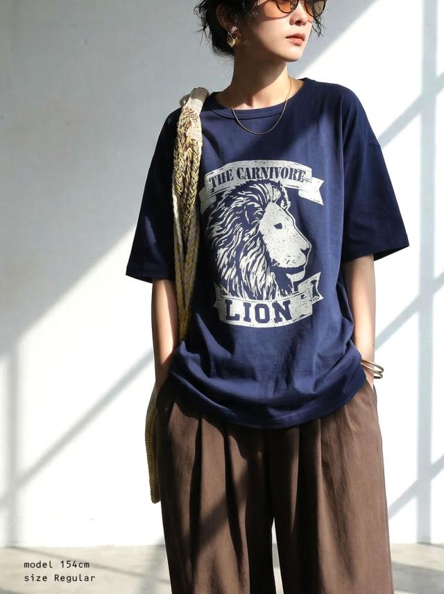 古着ライクな動物モチーフのアニマルロゴがアクセントになり、コーデに取り入れるだけでカジュアルな雰囲気を演出します。