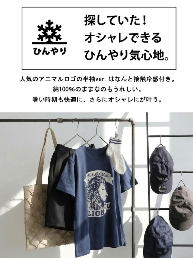 半袖 Tシャツ レディース 接触冷感 綿100 アニマル ロゴT・(50)メール便可 春新作