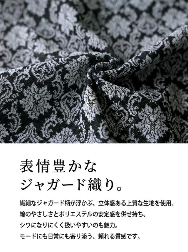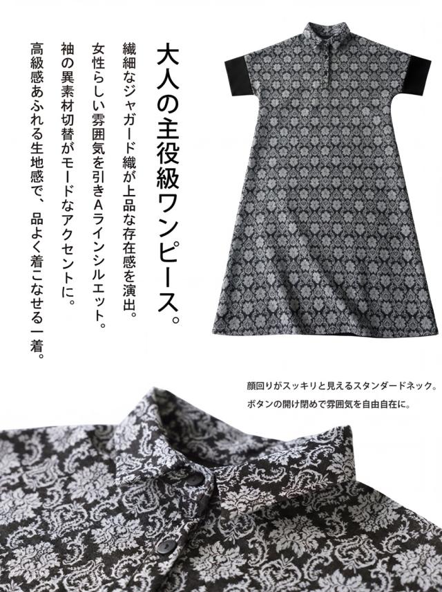ジャガード生地にダマスク柄を施した上品でモードなワンピースです。