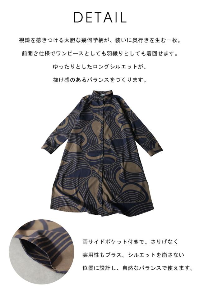 視線を惹きつける幾何学柄が印象的なシャツワンピースです。