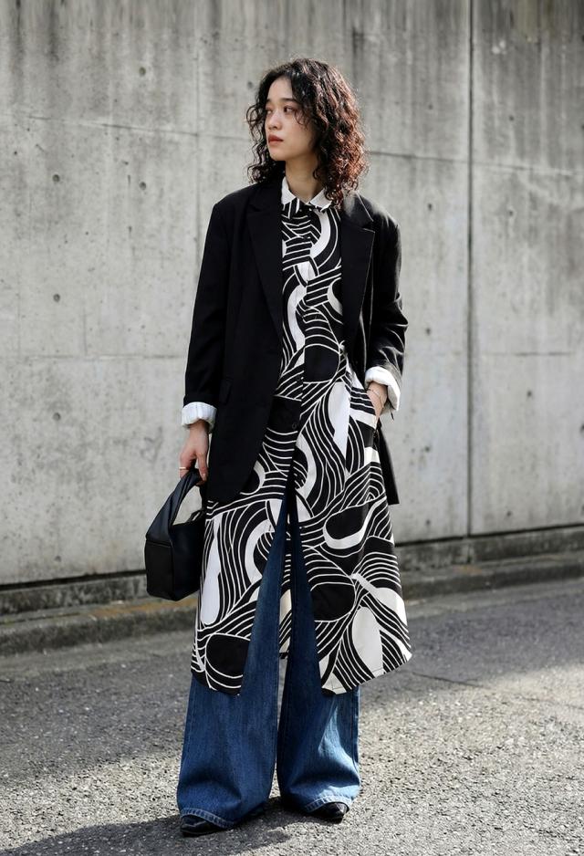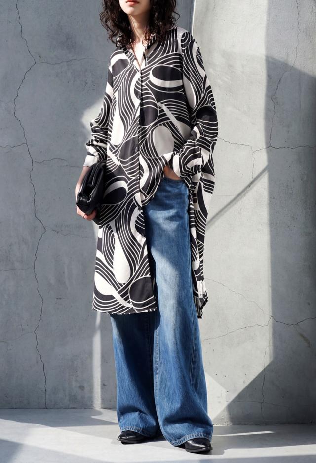 大胆でありながら品のある柄が、コーディネートの主役として存在感を放ちます。