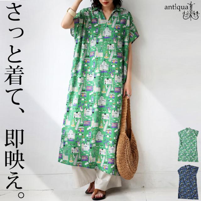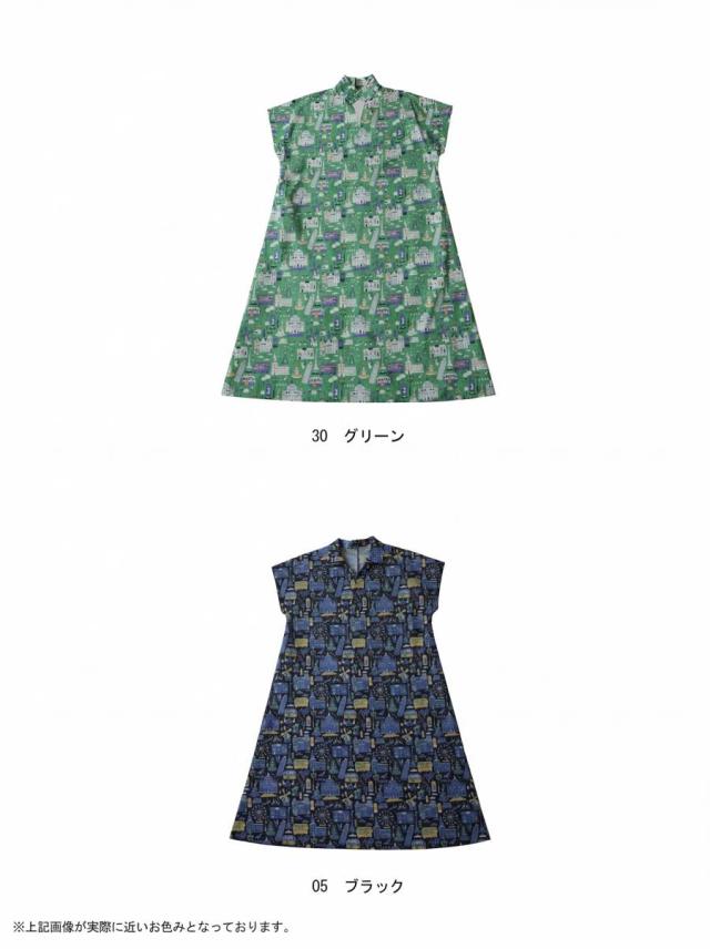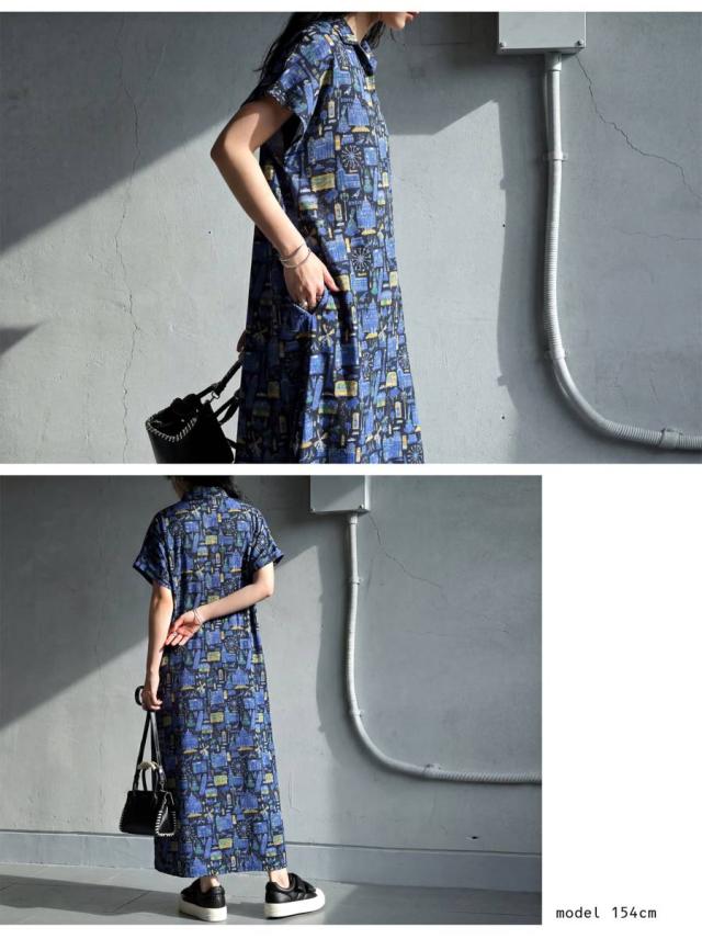 ワンピース レディース 半袖 ロング丈 街柄 総柄 送料無料・(50)メール便可 春新作