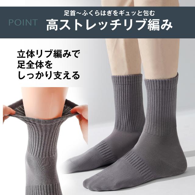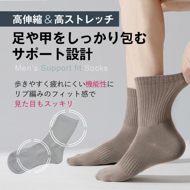 靴下 メンズ サポートフィット ソックス 5足 セット 脚筋サポート 男性用 無地 黒 綿100% コットン リブ 通勤 ビジネス ウォーキング ふくらはぎ 足首 むくみ 綿 立ち仕事 黒 クリスマス ギフト プレゼント SC1 WD 9121