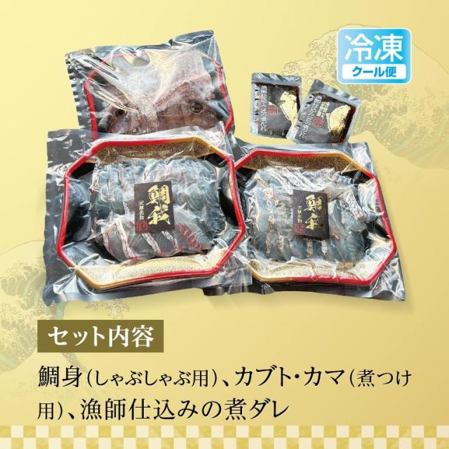 ●セット内容/鯛身(しゃぶしゃぶ用)、カブト・カマ(煮つけ用)