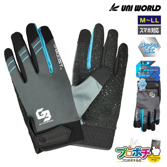 GB-1003 G-BOOST ブレス スマホ対応手袋 滑り止め 通気性 メッシュ加工 M〜LL 夏用作業グローブ ユニワールド