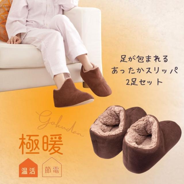 極暖足が包まれるスリッパ 2足セット 送料無料 スリッパ 冬 暖かい 厚底 秋冬 メンズ レディース 男性 女性 冬用 室内 茶色 ブラウン ふわふわ ルームシューズ ボア 防寒 あったか 暖かい 足先 グッズ アイテム 冷え性 冷え 寒い あったかグッズ 冬 大人