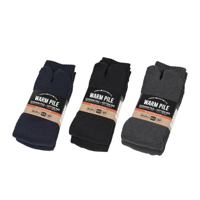 ウォームパイルソックス 2P アソート 8662 秋冬 防寒 靴下 メンズ ビジネス ソックス パイル 指付 2足組 25.0cm-27.0cm ユニワールド