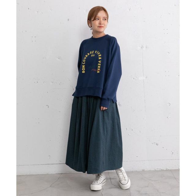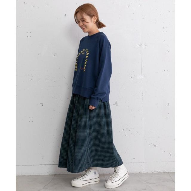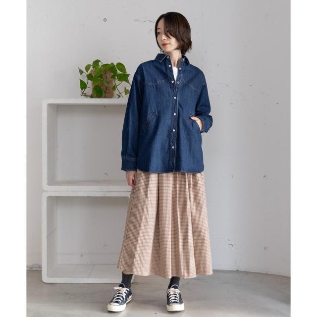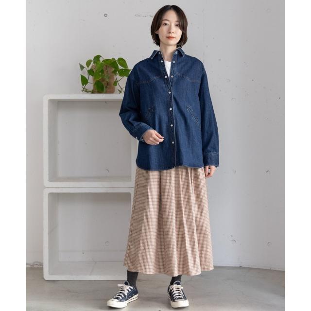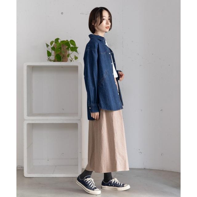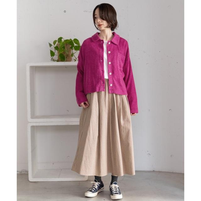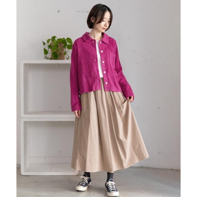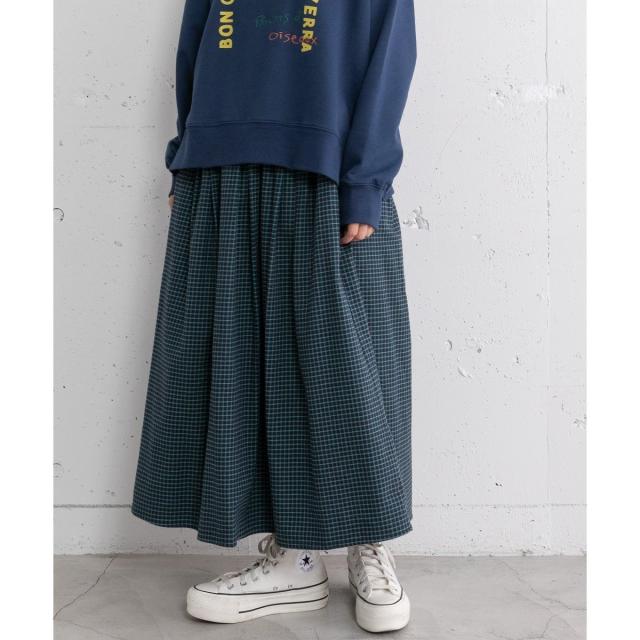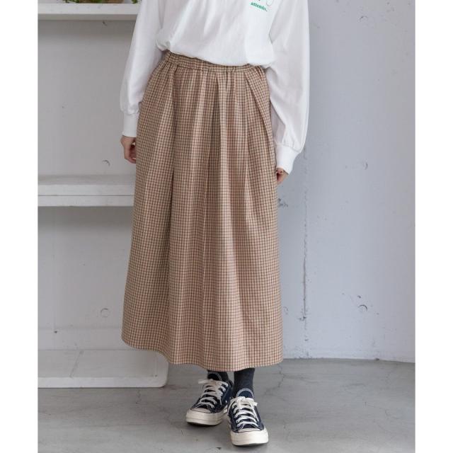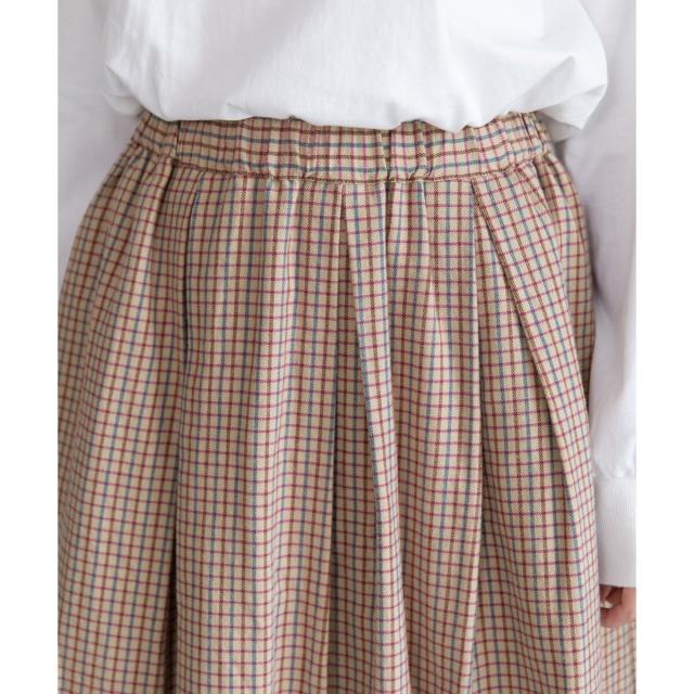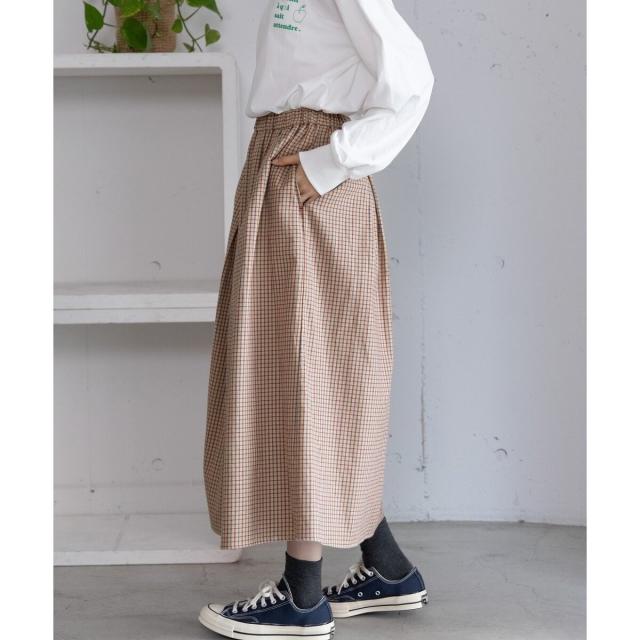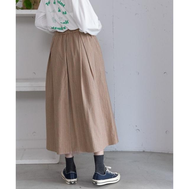 オリジナルの格子チェックスカート。ふんわりとした風合いで柔らかく、触り心地が気持ち良いコットンビエラ素材を使用しました。ふんわりと広がるタックを取ったデザインで、ニットにもスウェットにも可愛く合わせていただけます。バックゴム仕様でリラクシーな履き心地でありながらトップスインもきれいにきまります。。両サイドポケットつき。