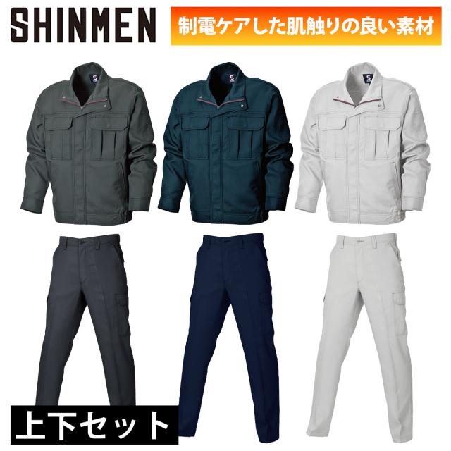 シンメン ストレッチスタンダードジャケット カーゴパンツ 上下セット 02700-02702 大きいサイズ 裏綿 ストレッチ 制電加工 吸汗速乾 形態安定 ワークウェア 現場 工事 建設 倉庫 屋外作業 定番 秋冬 作業着 作業服 SHINMEN