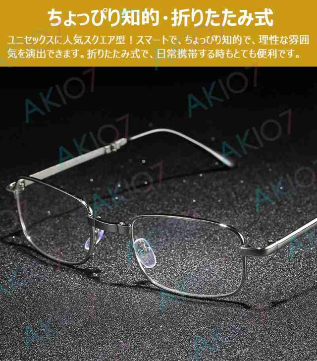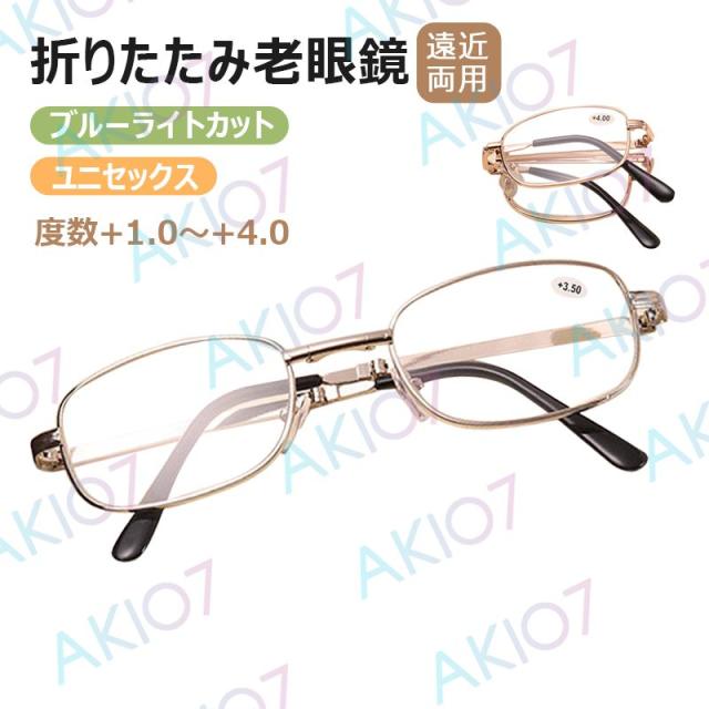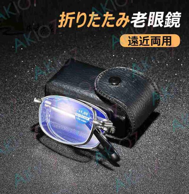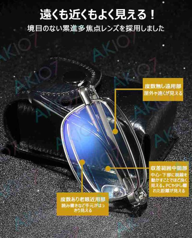 【遠近両用・折りたたみ】 老眼鏡 累進多焦点 ブルーライトカット ケース付き 金属フレーム 老眼用メガネ おしゃれ 紫外線カット 眼鏡 メンズ レディース かっこいい 男女兼用 軽量 コンパクト 母の日 父の日 敬老の日 ギフト クリスマス プレゼント