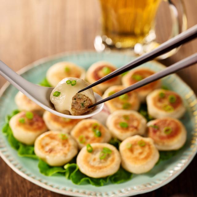 黒豚の旨みをモチモチの皮でとじ込めた焼き小籠包。