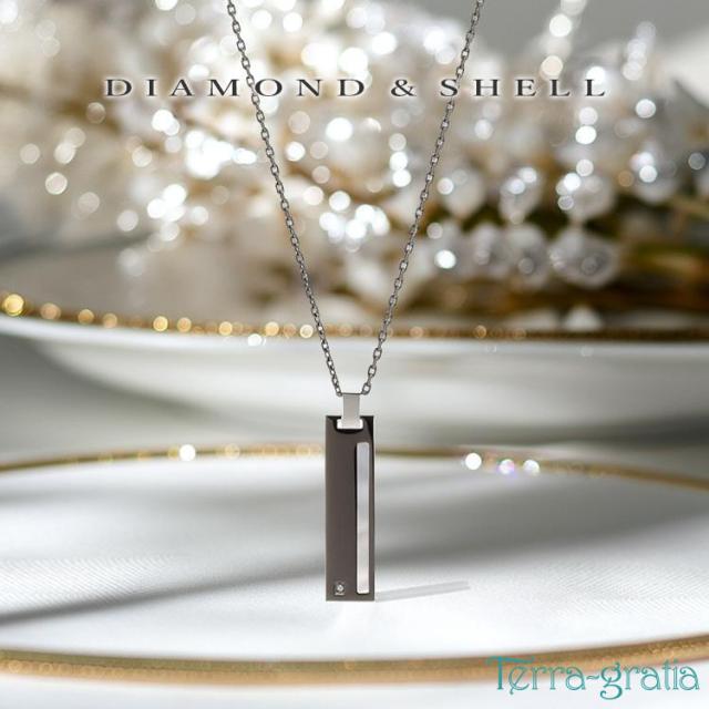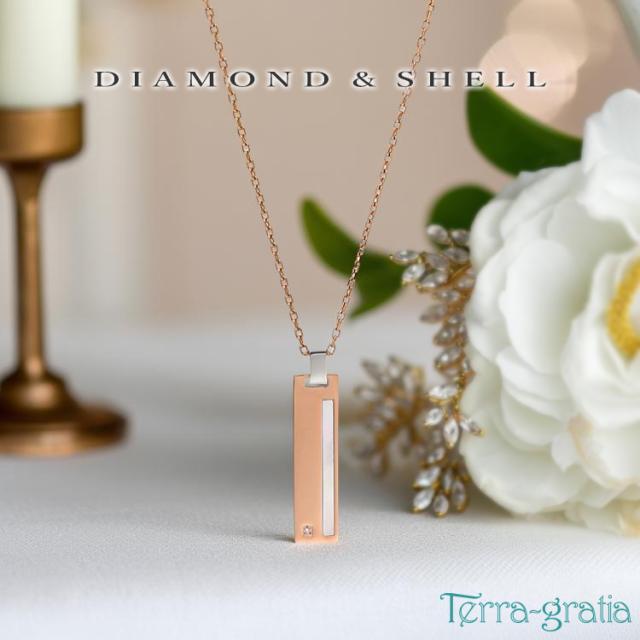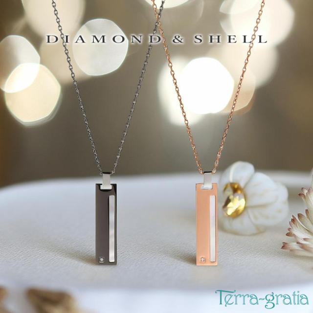 ペアネックレス ステンレス 刻印 大人 ブランド シンプル 金属アレルギー対応 つけっぱなし ダイヤモンド シェル プレート サージカルステンレス 2本セット Terra-gratia テラグラティア lstn028gun_rg_pair