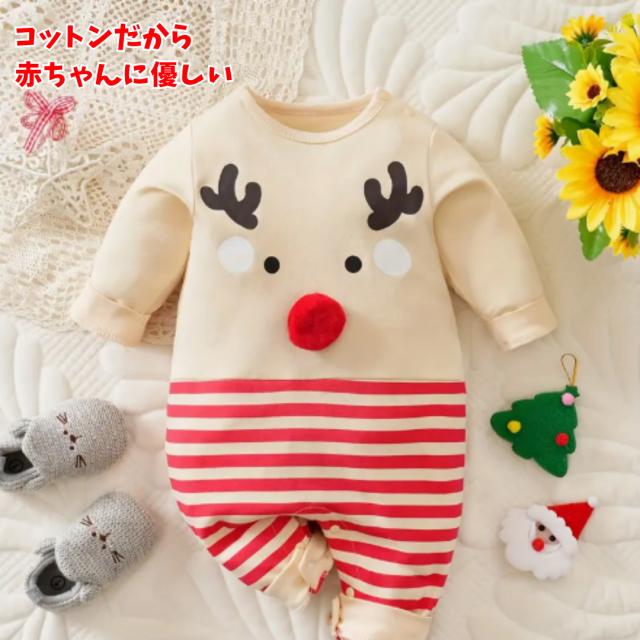 ・特徴:クリスマス向けのトナカイロンパース