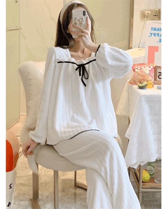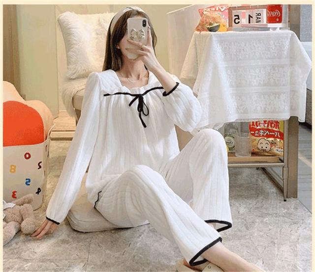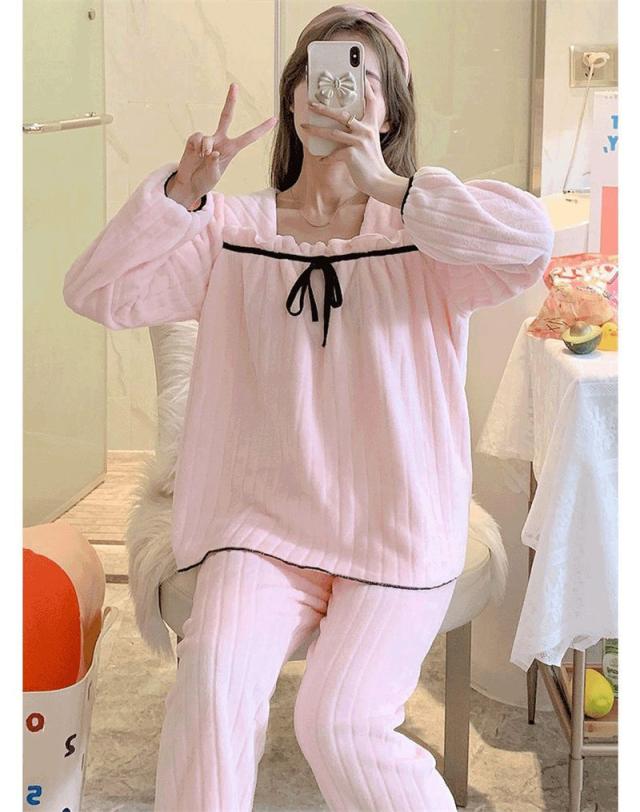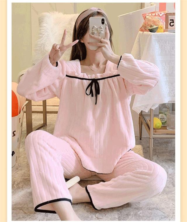 冬新作パジャマ レディース ルームウェア 部屋着 寝巻き モコモコ 長袖 フランネル プレゼント 暖 上下セット 可愛い 送料無料 防寒 暖かい 大好評