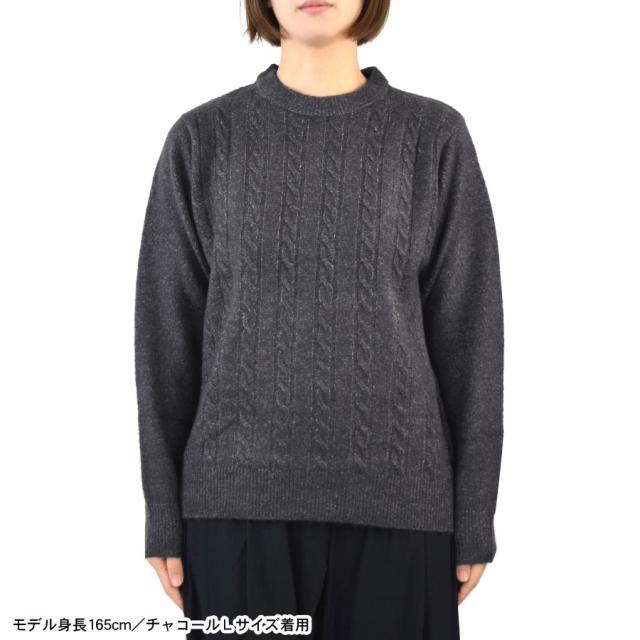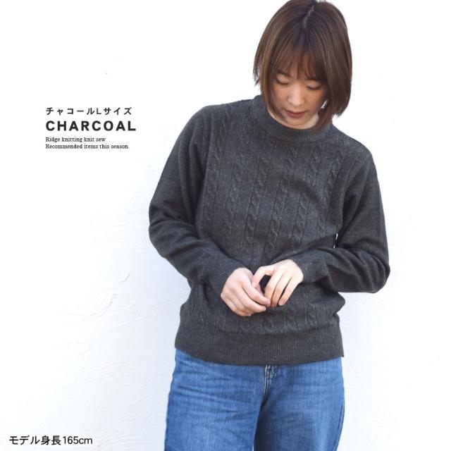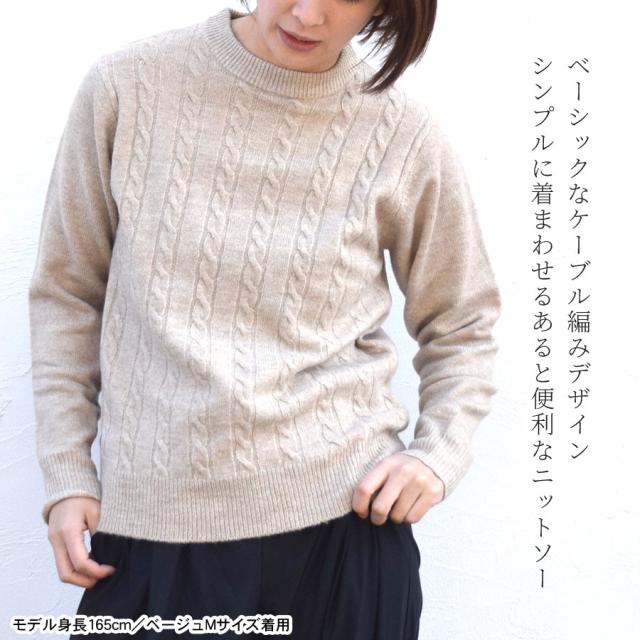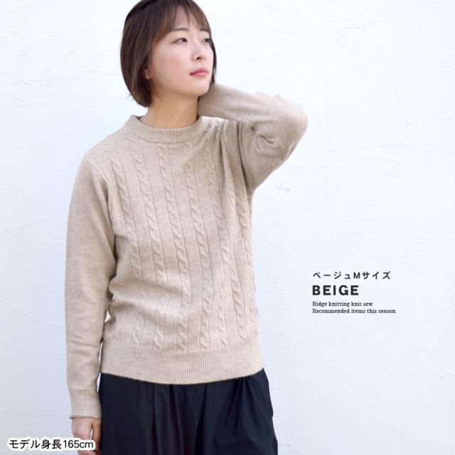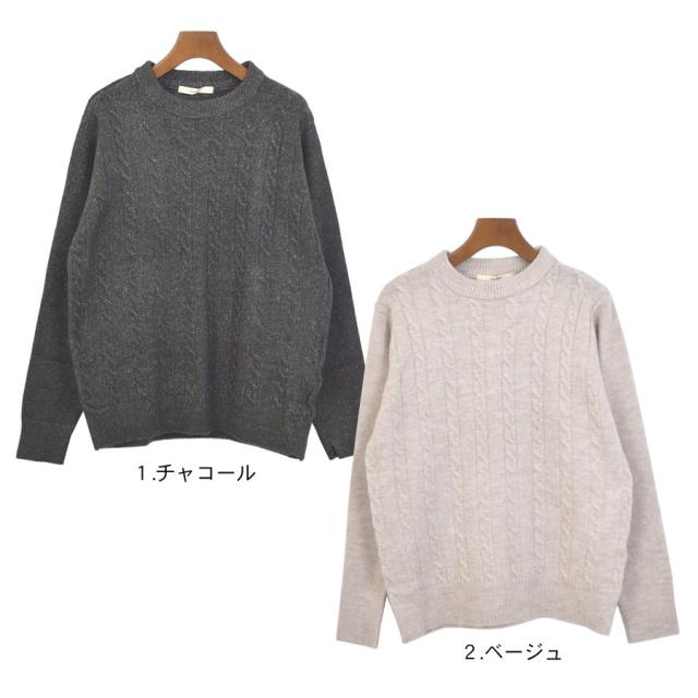【ニット レディース ニットソー ケーブル編み 長袖 秋 冬 丸首 無地 トップス ケーブルニット きれいめ おしゃれ かわいい カジュアル オフィス 着回し シンプル セーター プルオーバー】