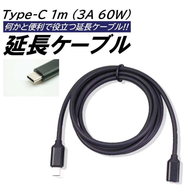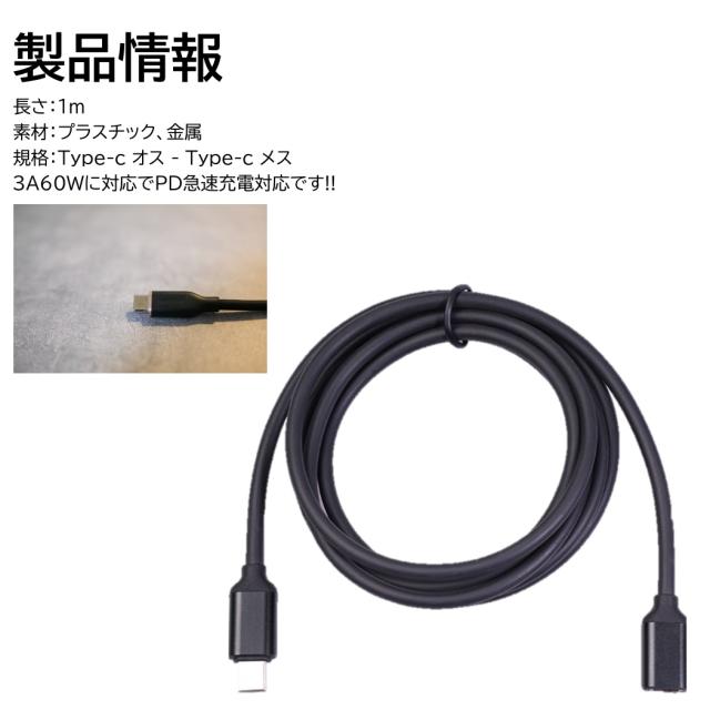 Type-c 延長ケーブル 長さ 1m 3A 60W USB2.0 PD対応 急速充電 データ転送 ノートPC パソコン macbook タイプC USB-C 充電 延長