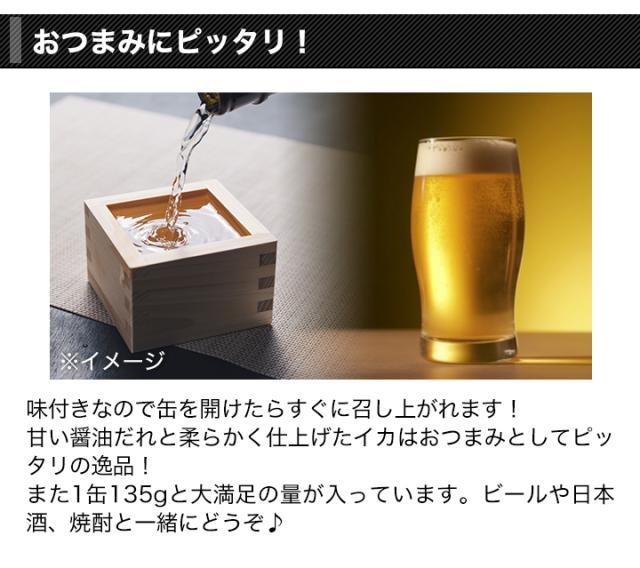 丸大豆醤油に鰹・昆布だし、そして魚醤(いかいしる)を加え、上品な味わいに仕上げたいかの缶詰!日本酒やビールのおつまみにオススメ! |