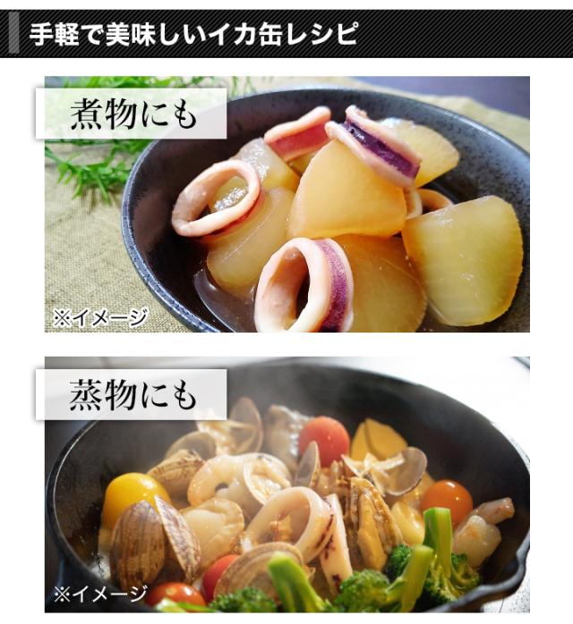 缶のままおかずの一品としてはもちろん、お米と一緒に炊くとイカ飯に、パスタに絡めて海鮮和風パスタにとお手軽にアレンジもしていただけます。
