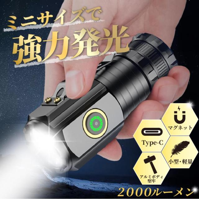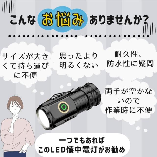 【爆売れ!】懐中電灯 LEDライト 小型 USB充電式 強力 防災 コンパクト 充電式 手のひらサイズ 全長80mm アウトドア ライト 登山 小型 高出力 耐衝撃 キャンプ テント ランタン