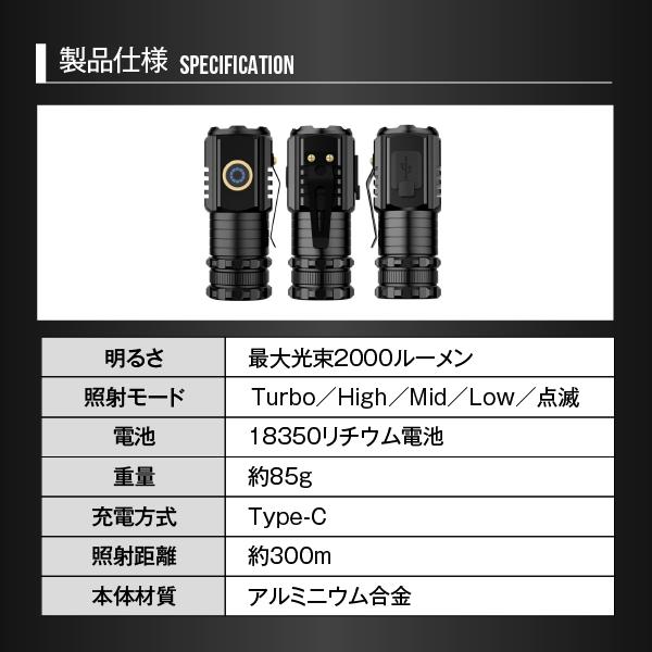 1.最大光束2000ルーメン