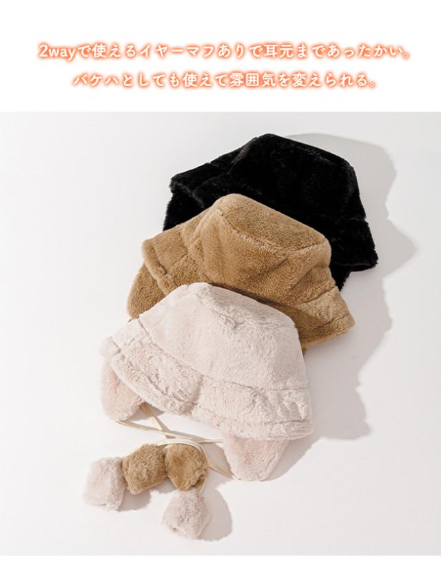 春新作 バケットハット レディース 冬 もこもこ 帽子 ハット イヤーマフ 耳当て 2way 取り外し可 折りたたみ フェイクファー 無地 防寒 あったか おしゃれ かわいい ふわふわ ポイント消化 母の日