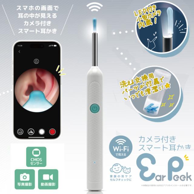 <送料無料>カメラ付きスマート耳かき イヤーピーク iPhone Android スマート耳かき 耳掃除 LEDライト シリコンヘッド 子供 赤ちゃん みみかき 耳掻き