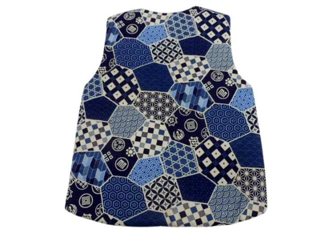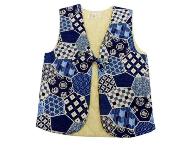 ちゃんちゃんこ 子供 日本製 キッズ 男の子 はんてん 半天 半纏 中綿 パッチワーク かわいい made in japan ポンチョ 和柄 ベビー 部屋着 男児 幼児 園児 小学生 赤ちゃん 紺 白地 矢絣 家紋 No59