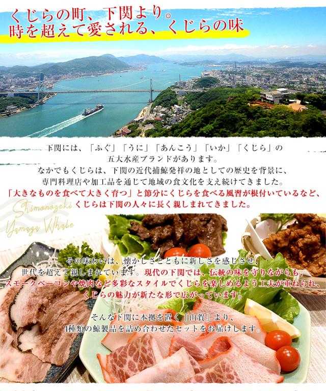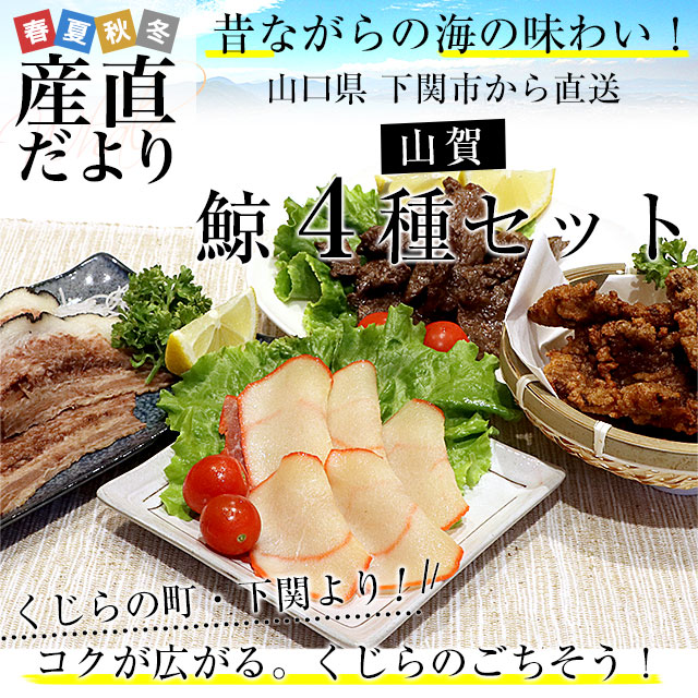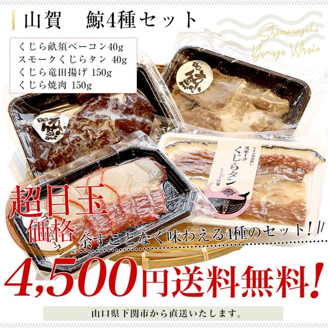 山口県下関市から産地直送 山賀 鯨4種セット(A) くじら 鯨ベーコン 鯨タン 鯨焼肉 鯨竜田揚げ 送料無料 ※クール冷凍便 【発送時期:カート内に記載しております】