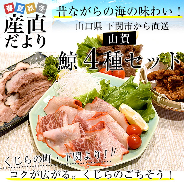 山口県より直送 山賀 鯨4種セット(B) くじら 鯨ベーコン 鯨タン 鯨焼肉 鯨竜田揚げ 送料無料 ※クール冷凍便 【発送時期:カート内に記載しております】
