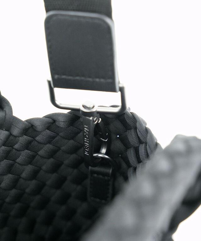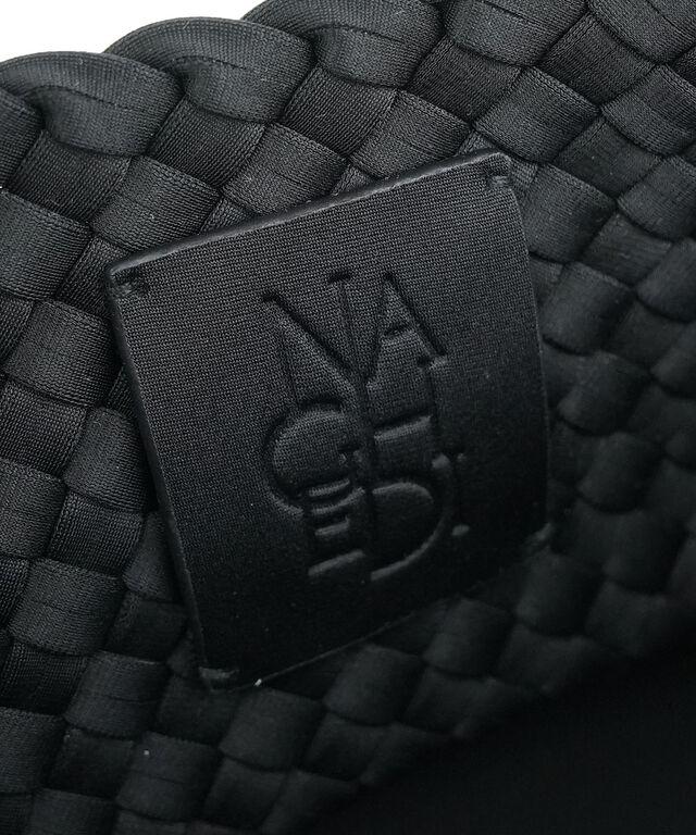 レザーに劣らない高級感のある佇まいながら、軽量で防水性に優れた合成ゴム素材で織られた