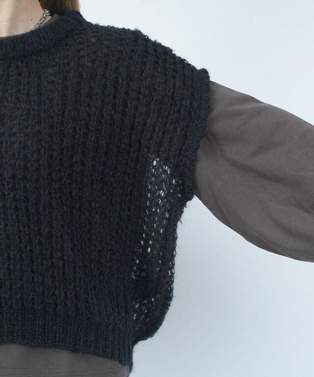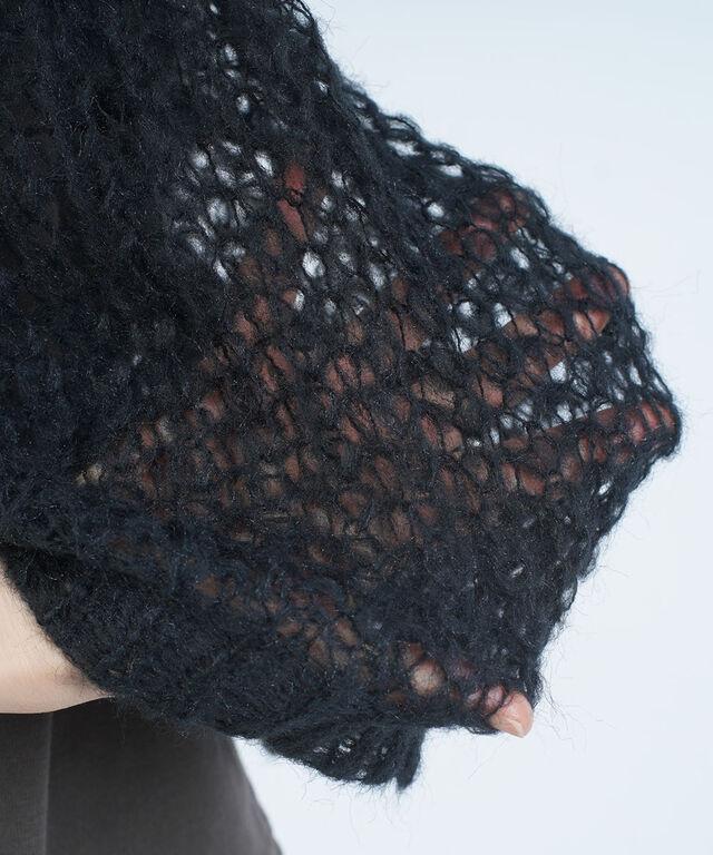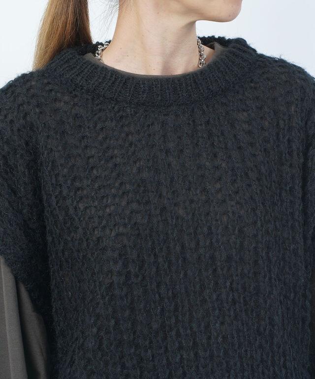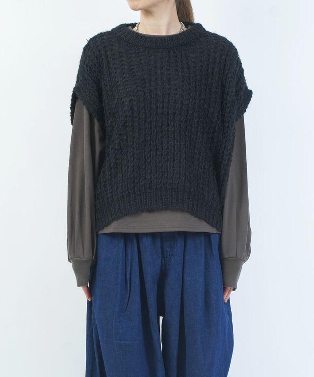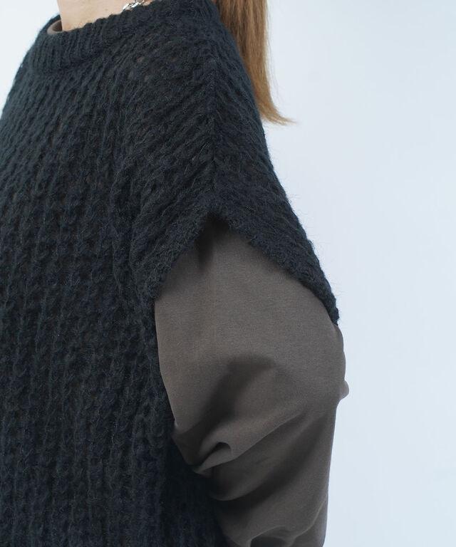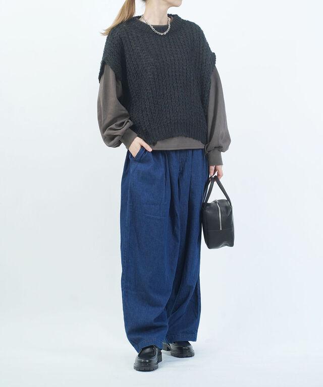 ふんわりと緩く編みこんだアイテムは、レイヤードスタイルにピッタリ!