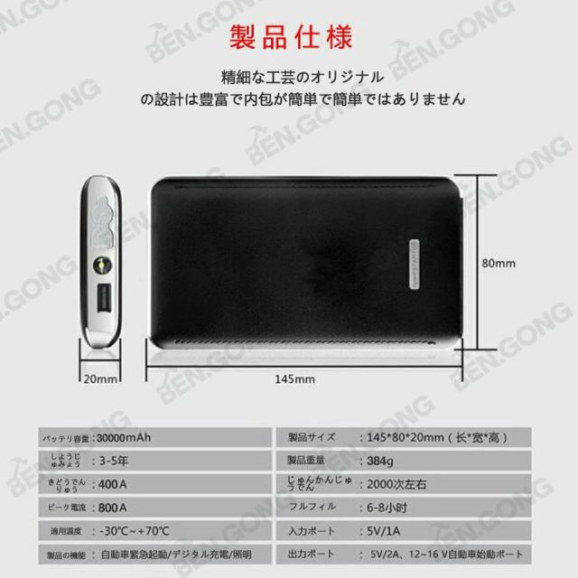 【大容量30000mAh】ジャンプスターター 12v車用 30000mAh 大容量 充電器 ジャンプ スターター エンジンスターター 車用エンジンスターター 車緊急始動 12ボルト バッテリー上がり 防止 車用 車用品 安全保護機能 LED緊急ライト搭載 アウトドア 防災 非常用 送料無料