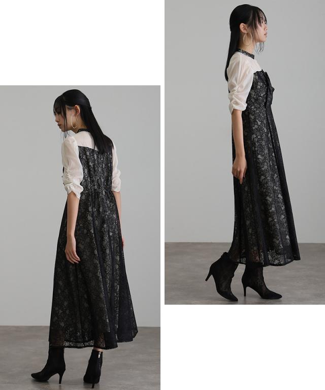 印象的なフラワーレースを纏ったオケージョンドレス。