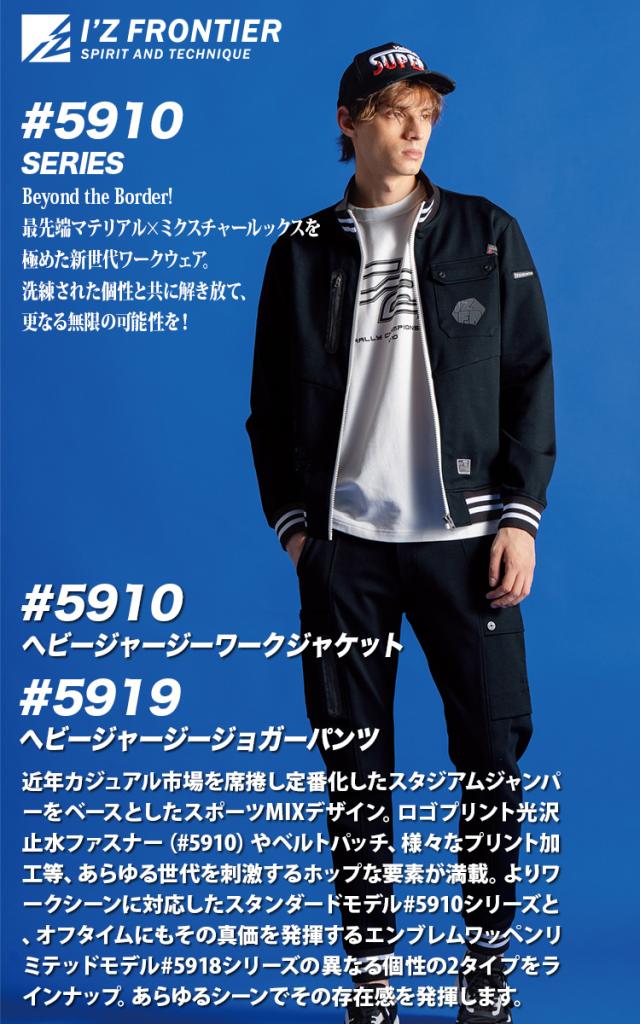 アイズフロンティア 2025年 秋冬 新商品 ヘビージャージーワークジャケット ジョガーパンツ 上下セット 5910-5919 ストレッチ ニット 動きやすい おしゃれ かっこいい スポーティ カジュアル 作業着 作業服 I’ZFRONTIER