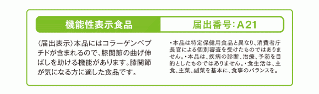 「ひざサポートコラーゲン」は、ひざ関節の曲げ伸ばしを助ける商品として消費者庁に届出し、「機能性表示食品」として受理されました。