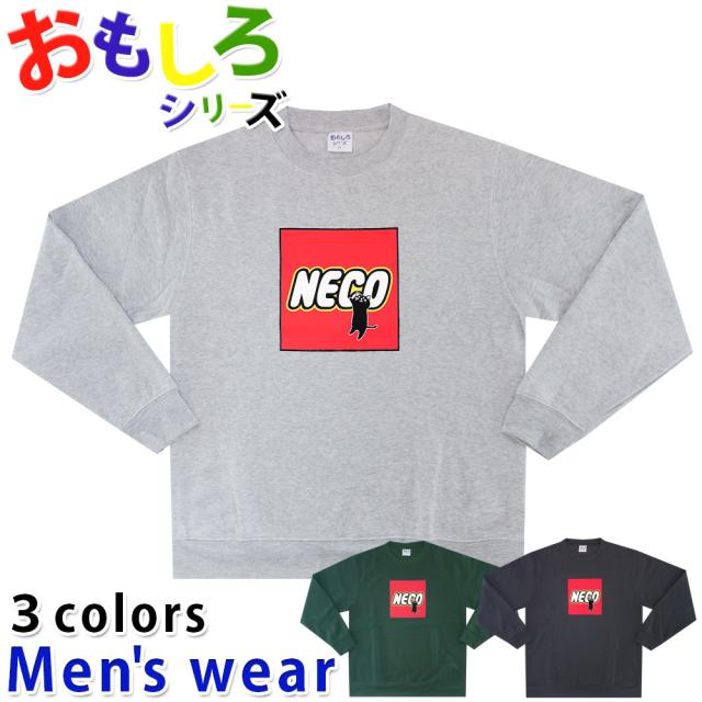 ★条件付き送料無料★ おもしろ 裏起毛 トレーナー メンズ 12539333C スウェット ネコ 猫 ブロック グッズ