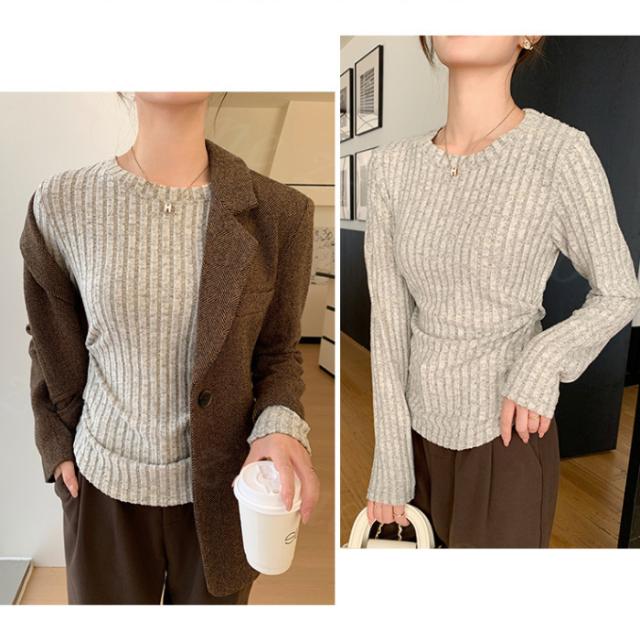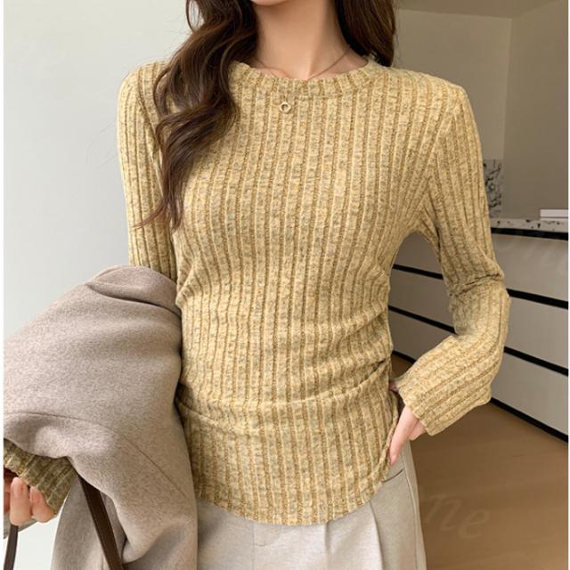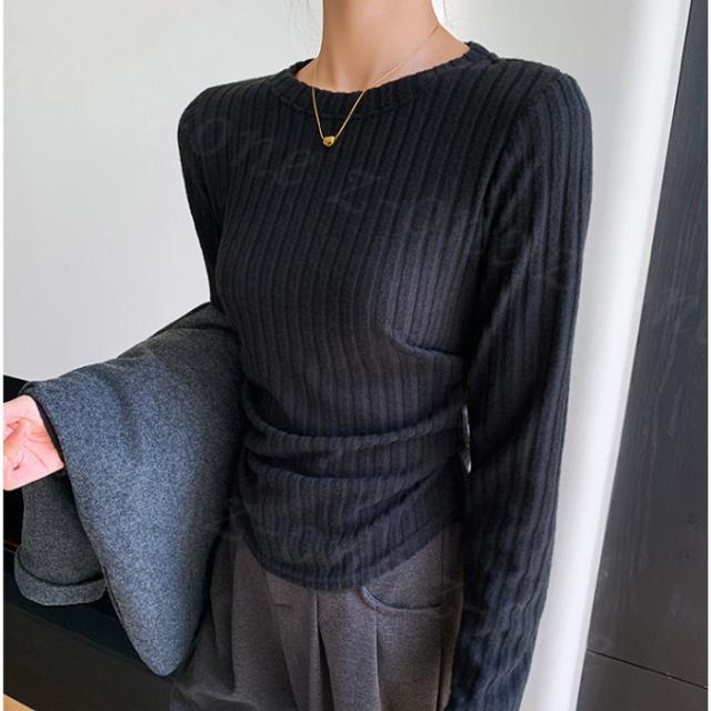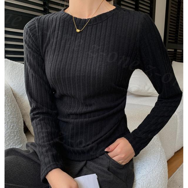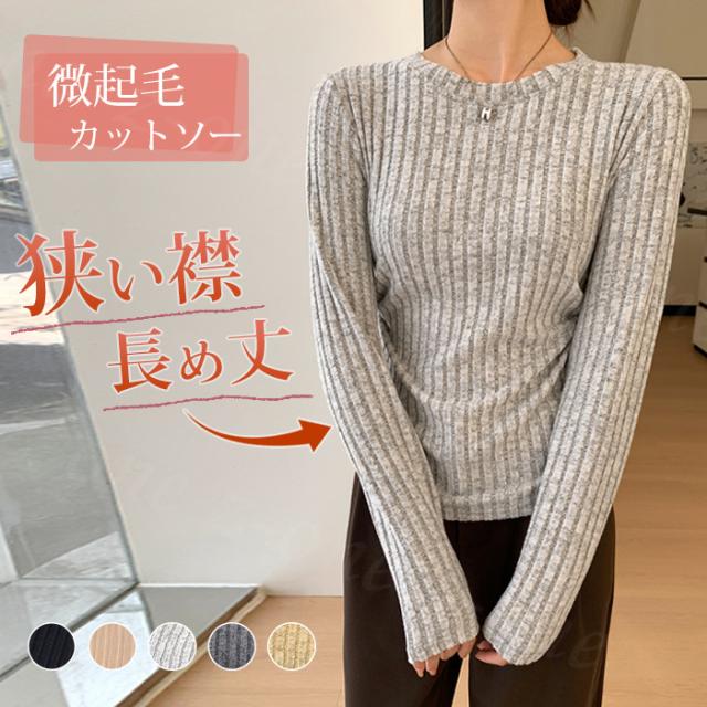 カットソー 長袖 Tシャツ レディース シャツ 微起毛 秋冬 春新作 ラウンドネック インナー スリム見え トップス リブ編み ファッション プルオーバー カジュアル シンプル 通勤 おしゃれ 着回し 入学式 入園式