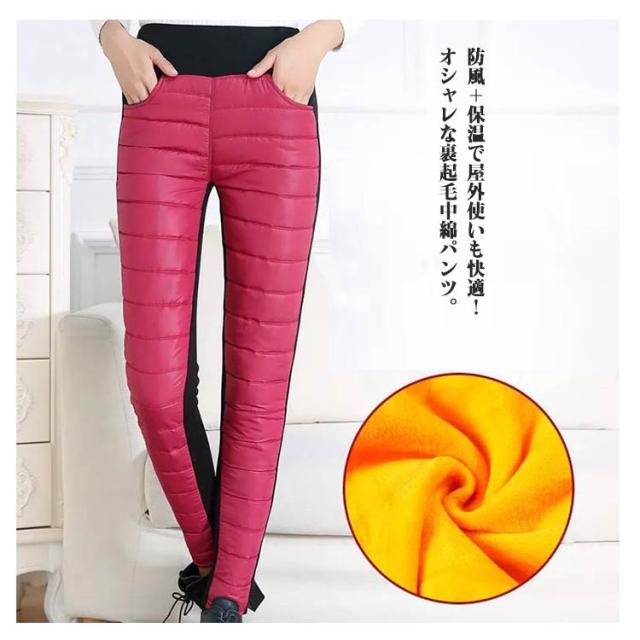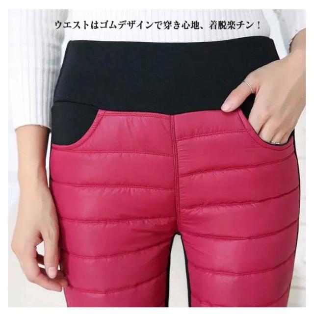 美脚 裹起毛 防寒着 秋冬 レディース ダウン綿パンツ 軽量ダウンパンツ 防寒パンツ スキニーパンツ ダウン綿パンツ ロングパンツ 厚手 美尻 ボトムス 着痩せ 細身 ハイウエスト ウエストゴム 保温 春 秋 冬