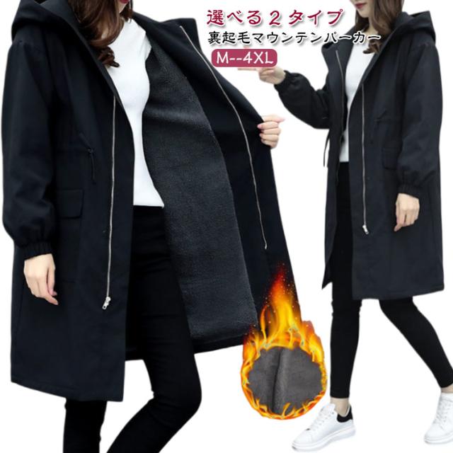 長袖 ロング丈 レディース マウンテンパーカー 裏起毛 羽織り 防寒 アウター パーカー 裏起毛 ジャンパー 上着 ミリタリー トレンチコート あったか コート 秋 冬 フード付き トップス 暖かい 厚手 きれいめ