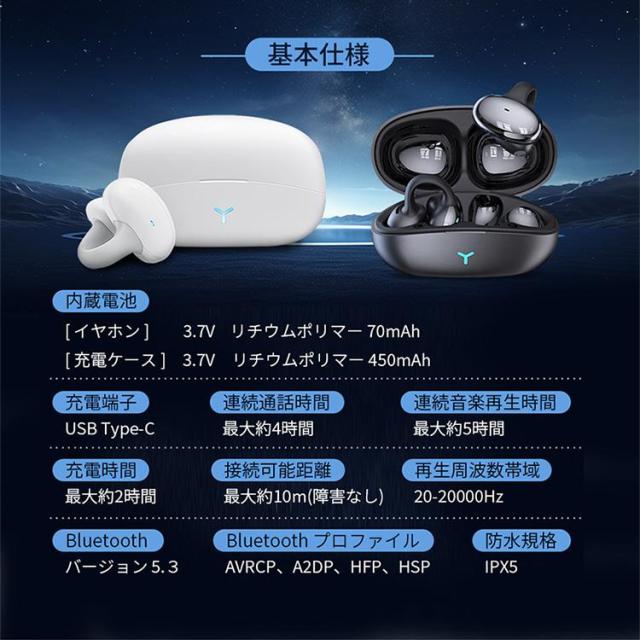 ワイヤレスイヤホン イヤホン 完全ワイヤレスイヤホン 耳掛け式 bluetooth5.3 耳を塞がない 軽量 左右分離型 高音質 防塵 防水 通話