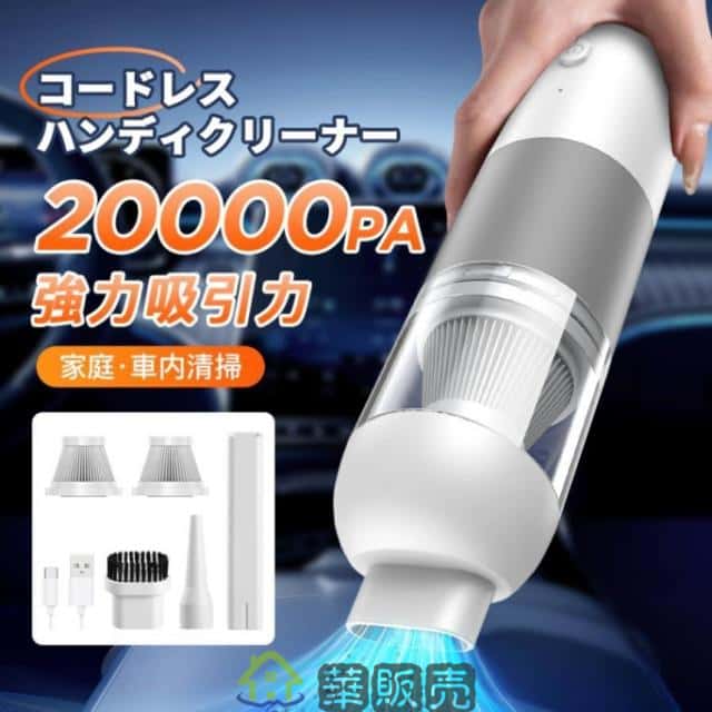 ハンディクリーナー 掃除機 20000pa吸引力 コードレス 強力 充電式 日本製DCモーター コンパクト 静音 軽量 ミニ 空気入れ 自宅 車載両用