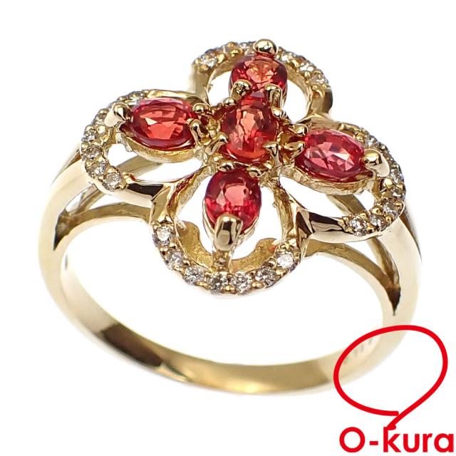 中古 ルビー ダイヤモンド リング レディース K18YG 11号 0.71ct/D0.11ct 3.3g 指輪 750 18金