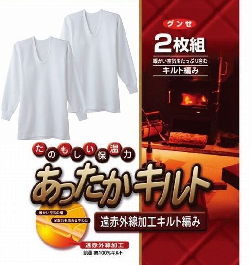 2枚組 キルト 綿 厚地 グンゼ 長袖U首 シャツ 肌着 あったかキルト 紳士 メンズ 長袖 遠赤外線 インナー 下着 本体 綿100% RP63102