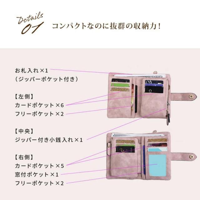 ポケットがたくさんあるのでカードやレシートもすっきり仕分け。