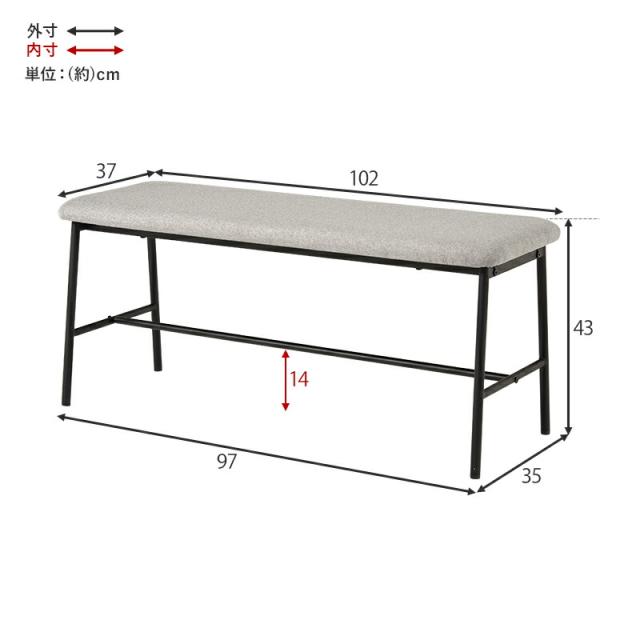 ダイニングベンチ 椅子 スツール LB-3207 背なしベンチ 幅102 ダイニング リビングチェア 異素材 フレーム スチール ポリエステル 合皮 ヴィンテージ調 軽量 リビング おしゃれ 北欧 飲食店 新生活 ハギハラ
