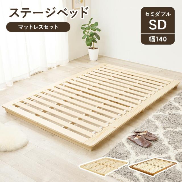 セミダブルベッド ローベッド ステージベッド ロースタイル マットレスセット 布団対応 萩原 すのこ 木目 頑丈 通気性 おしゃれ 北欧 一人暮らし