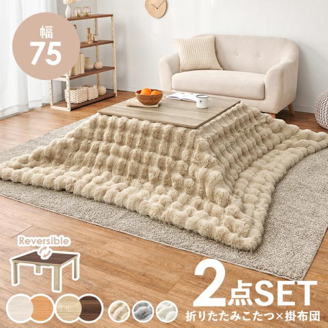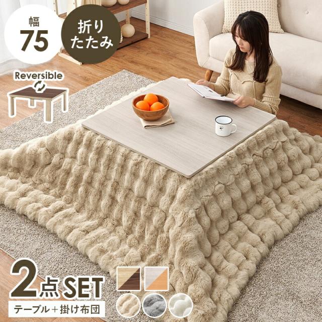こたつセット こたつ うす掛け布団 2点セット KOT-7350-75ルナ うす掛け布団セット こたつ 正方形 75x75cm カジュアルコタツ 折れ脚 リビングテーブル 座卓 ローテーブル 木目調 あったか かわいい 掛け布団 ふわもこ ラビットファー調 洗える 北欧 一人暮らし おしゃれ