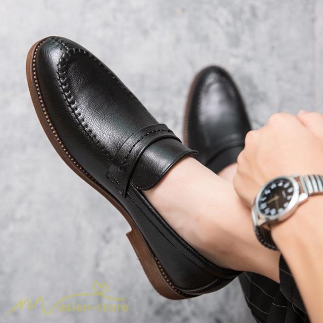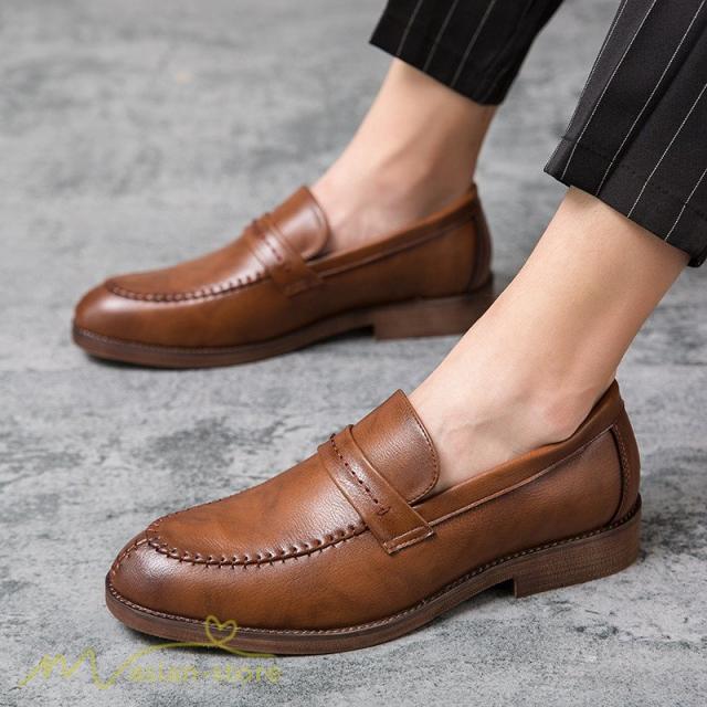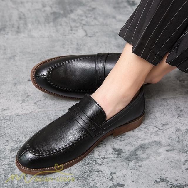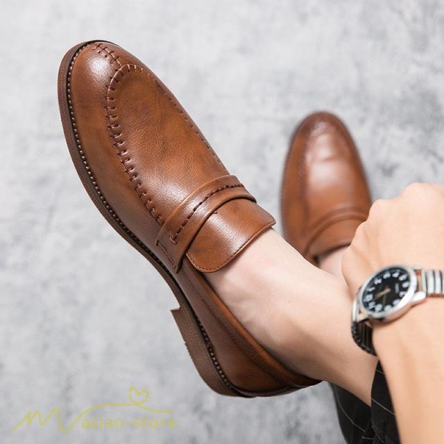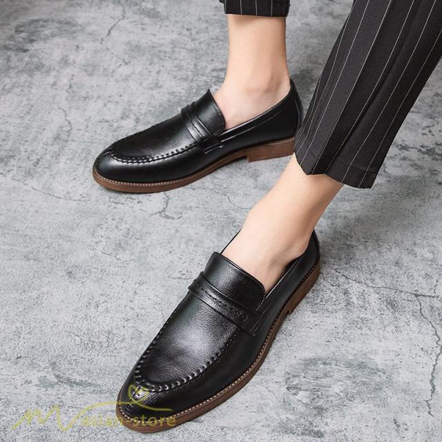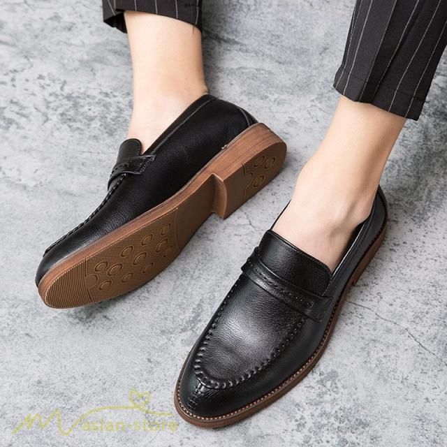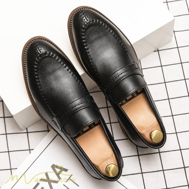 メンズシューズ 革靴 ローファー メンズ 紐なし Uチップ スリッポン ビジネスシューズ 紳士靴 フォーマル オフィス 防滑ソール 履き脱ぎやすい PU革 上品