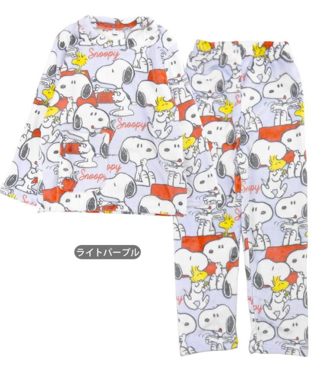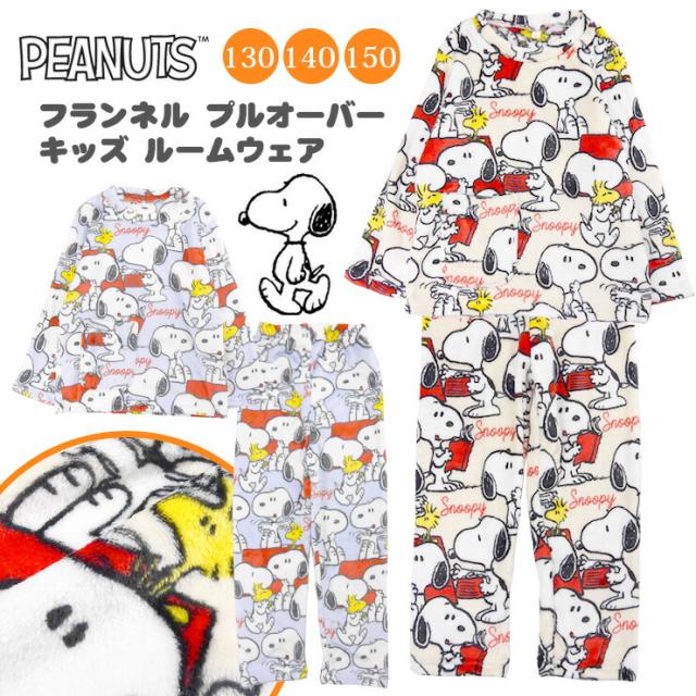 スヌーピー ピーナッツ フランネル ルームウエア 上下セットアップ キッズ ジュニア 130 140 150 SN-K-1 78436 秋冬 SNOOPY PEANUTS プルオーバー 長袖 長ズボン 丸首 ラウンドネック パジャマ 子ども 子供 クリーム ベージュ アイボリー ライトパープル 送料無料 kj0059