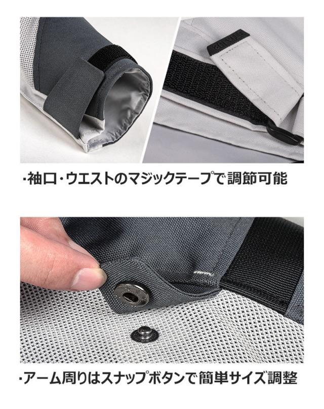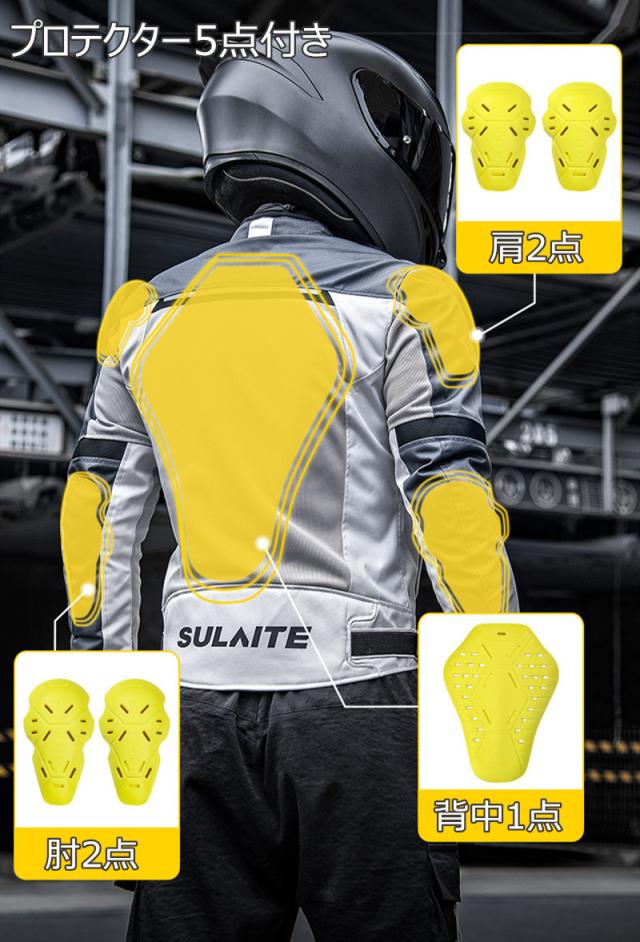 プロテクター:肩2点、肘2点、背中1点、総計プロテクター5点付き